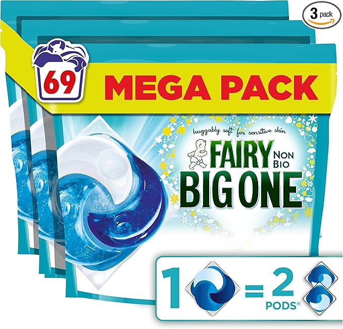 Fairy Non Bio The Big One PODS®, Washing Liquid Laundry Detergent Capasules, 69 Washes (3×23)-AUTO WIN 10/01