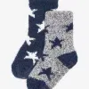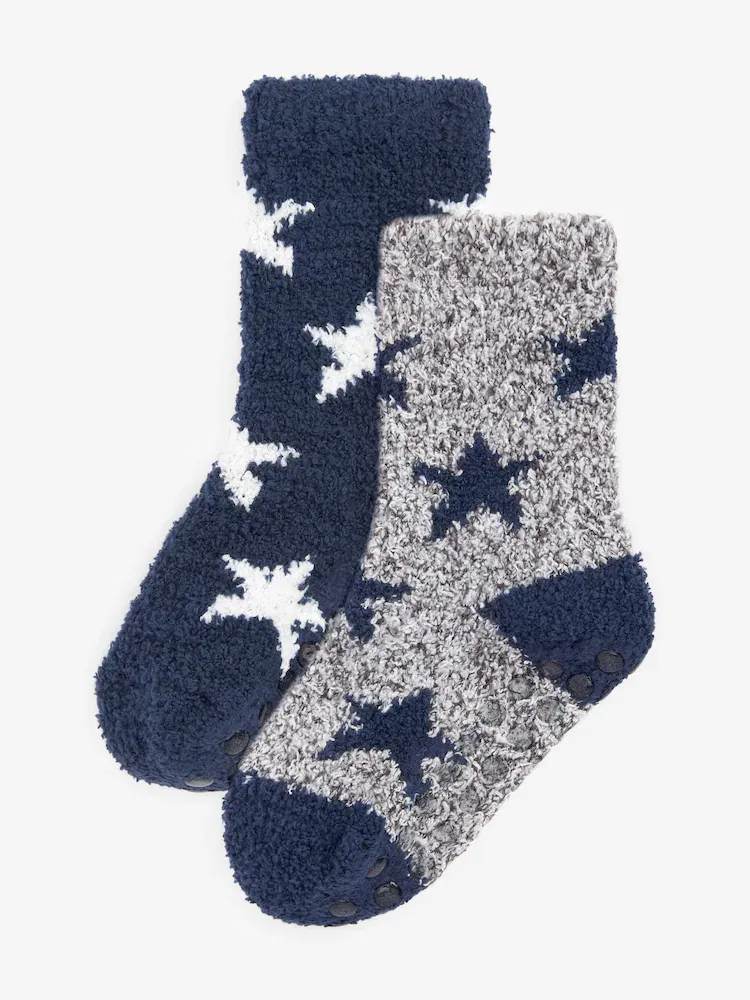 Navy Blue/Grey Stars Cosy Socks 2 Pack-CHILDRENS