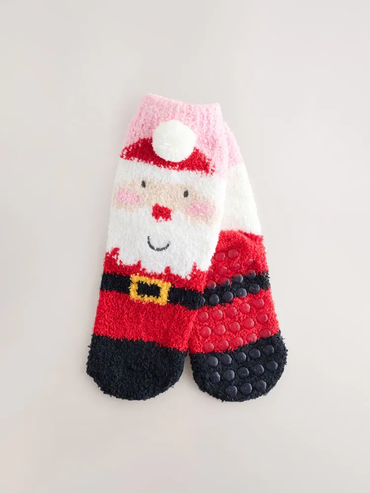 Red Santa Print Christmas Cosy Ankle Socks- GIRLS