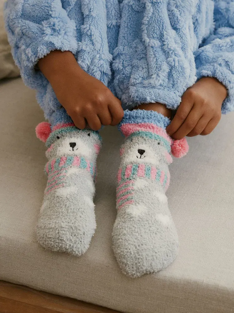 Grey/Blue Polarbear Print Christmas Cosy Ankle Socks- GIRLS