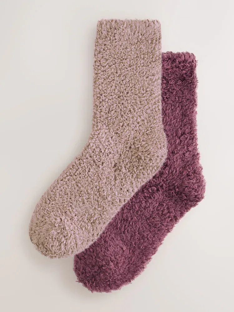 Purple/Mauve Teddy Borg Cosy Socks 2 Pack