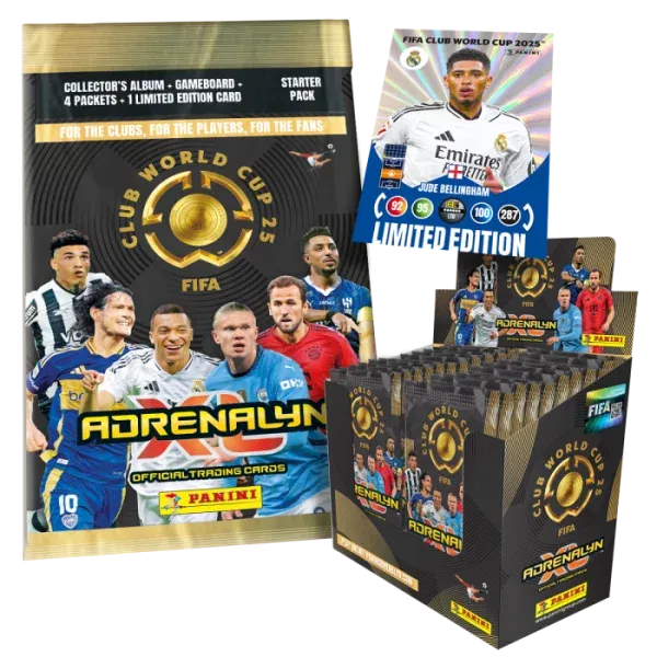 FIFA Club World Cup 2025 Adrenalyn XL Official Trading Card Collection – 50 Packets, Starter Pack and FREE Jude Bellingham LE card-AUTO WIN 30/09