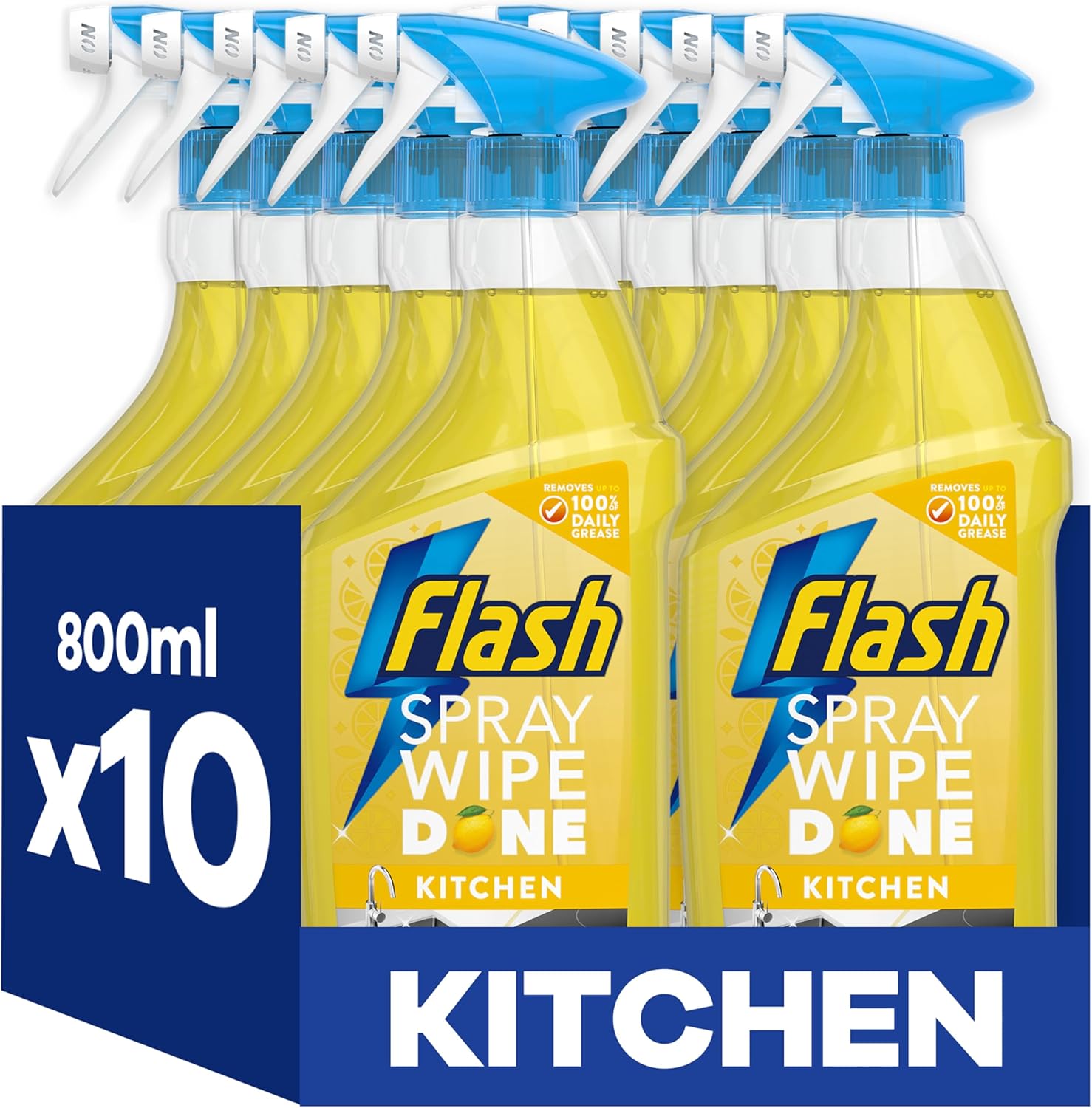 Flash Spray Wipe Done Kitchen Cleaning Sprays, Crisp Lemon, 8 Litres (800 ml x 10),AUTO-WIN 17/04