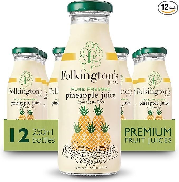 Folkington’s Fruit Juice, Pineapple Juice, 12 Glass Bottles, Pure Fruit Juice, Multipack 12 x 250 ml-AUTO WIN