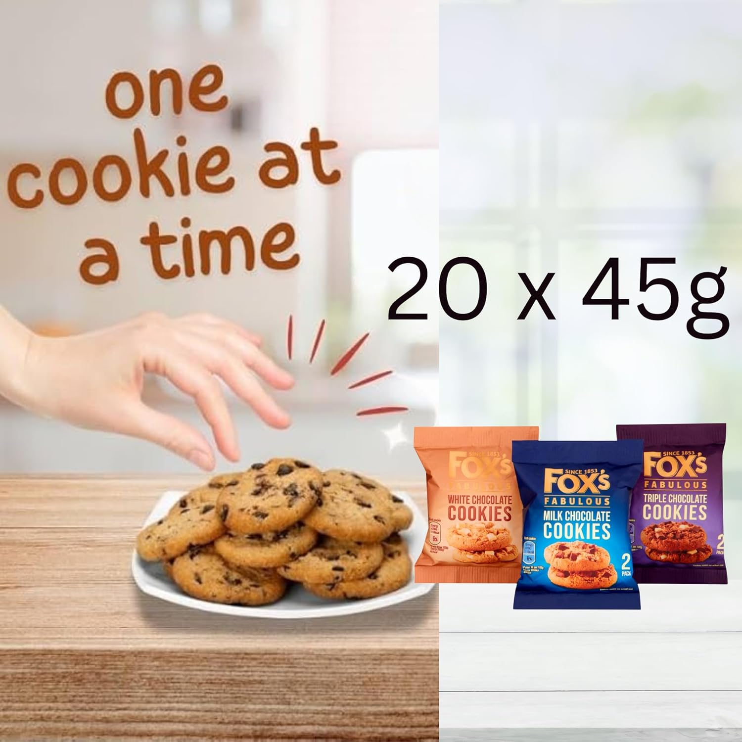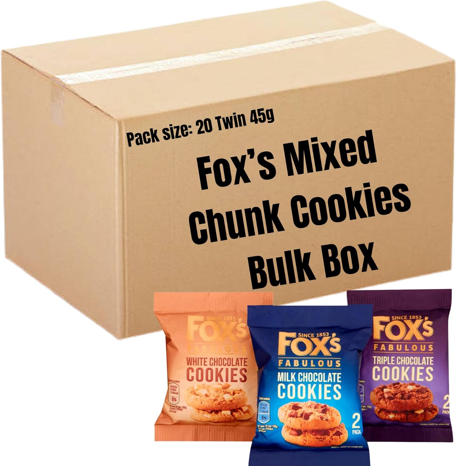 Fox’s Mixed Chunk Cookies Bulk Box Twin Packs Individually Wrapped Multipack Variety of Milk, Triple & White Chocolate Chunk for Guests, Visitor, Office, School or Tea Treats (20 Pack) AUTOWIN 20/11