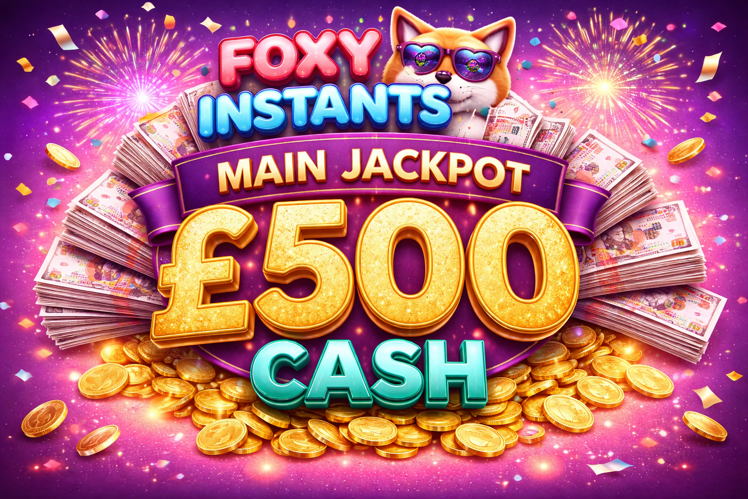 FOXY INSTANTS- MAIN JACKPOT £500 CASH- AUTO WIN 20/12