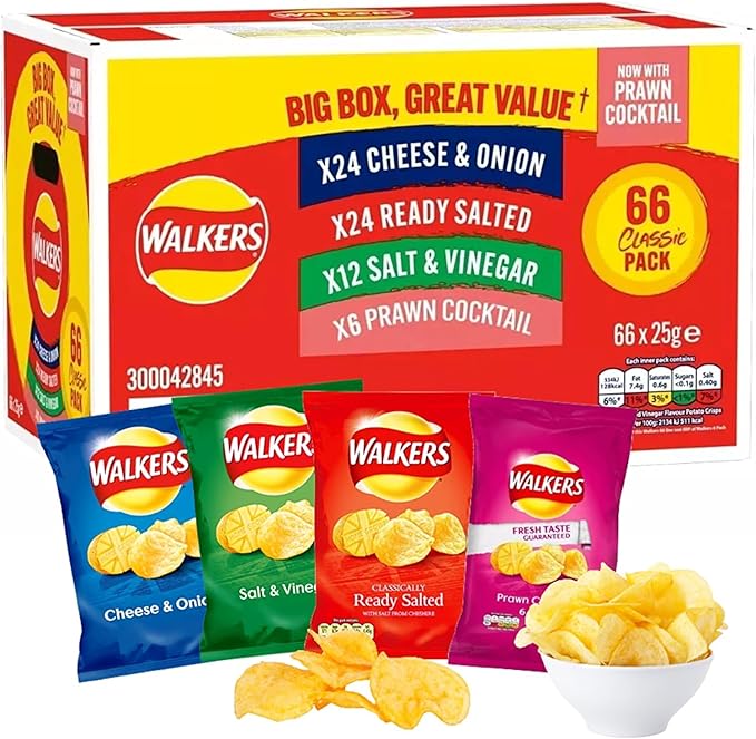 Giant Crisps Multipack Snack Box – Pack of 66 x 25g Assorted Classic Walkers Crisps-AUTO WIN