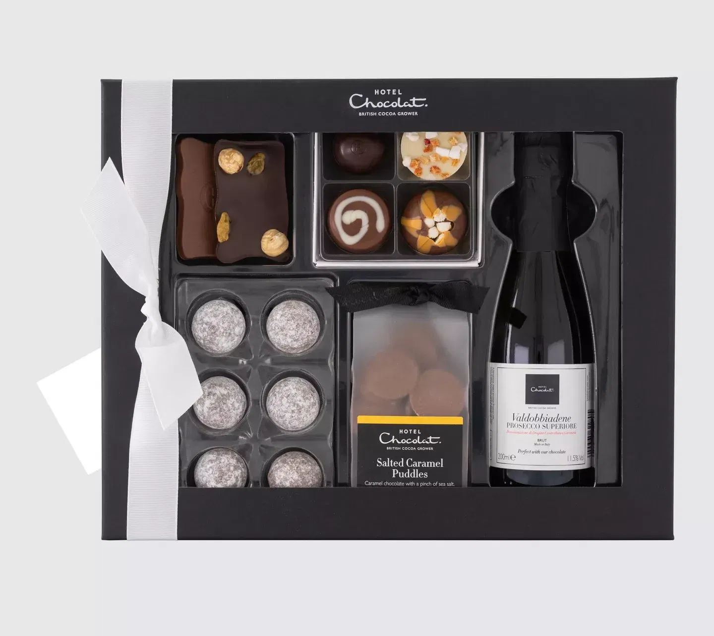 Help loved ones celebrate good times with a classic pairing of premium chocolates and prosecco in this gift hamper from Hotel Chocolat.