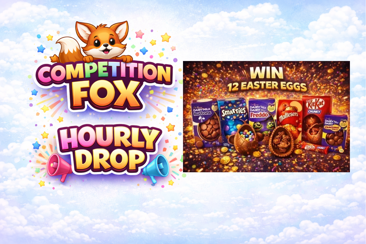 HOURLY COMPETITION STARTS ON THE HOUR, FINISHES ON THE HOUR.12 MIXED EASTER EGGS AUTO-WIN 04/03