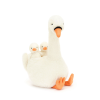 Featherful Swan is a very proud parent, protecting twin cygnets with their fluffy cream wings! This elegant swan has rich vanilla fur, set off by orange suedette feet and a matching beak with piping detail. The babies snuggled on their snowy back can pop out to explore by themselves!