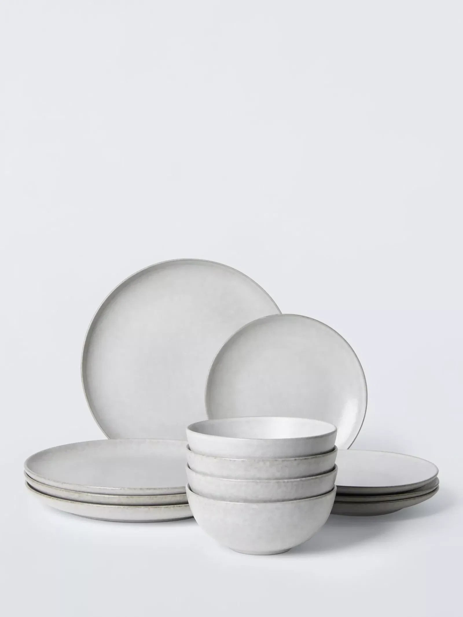 John Lewis Dappled Glaze Stoneware Dinnerware Set, 12 Piece, Light Grey-AUTO WIN