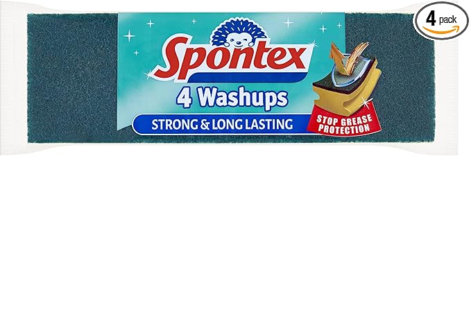 Spontex Washups General Purpose Sponge Scourers | 6.8 x 4 x 8.6cm | Pack of 4
