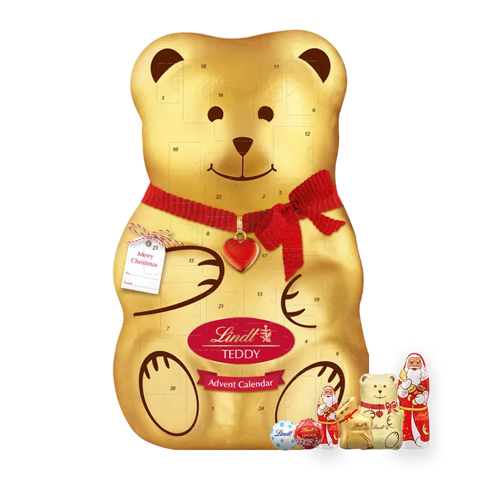 Bring home the magic this Christmas with the Lindt Gold TEDDY Advent Calendar. Our Master Chocolatiers have combined their unrivalled expertise with the finest ingredients to create 24 delicious festive chocolate treats hidden behind an adorable 3D TEDDY. Discover an irresistible selection of Swiss chocolates, from our iconic LINDOR Chocolate Truffles to our signature chocolate SANTA – not forgetting our creamy chocolate Snowdrops. Prepare to delight in a series of luxury chocolate surprises as you countdown to Christmas with Lindt…