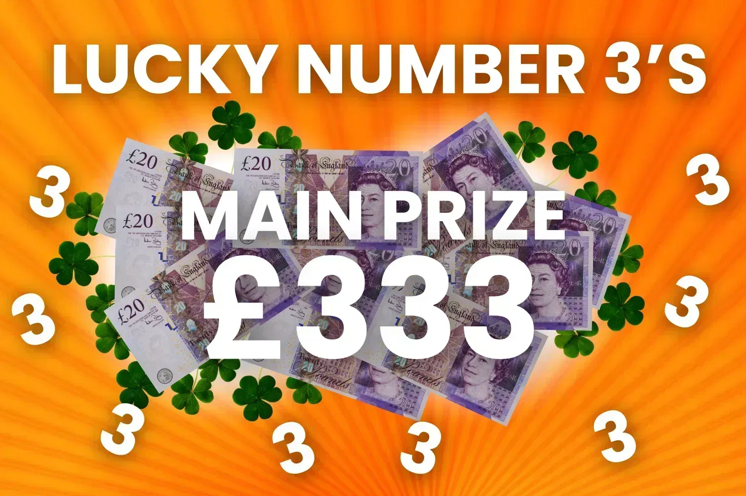 LUCKY NUMBER 3’S INSTANT WINS-MAIN PRIZE £333-AUTO WIN 12/10