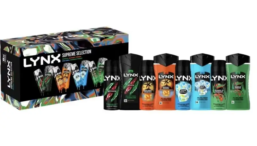LYNX Supreme Selection Gift Set includes four body washes and four body sprays in four iconic fragrances that help him kick-start his day the LYNX way.