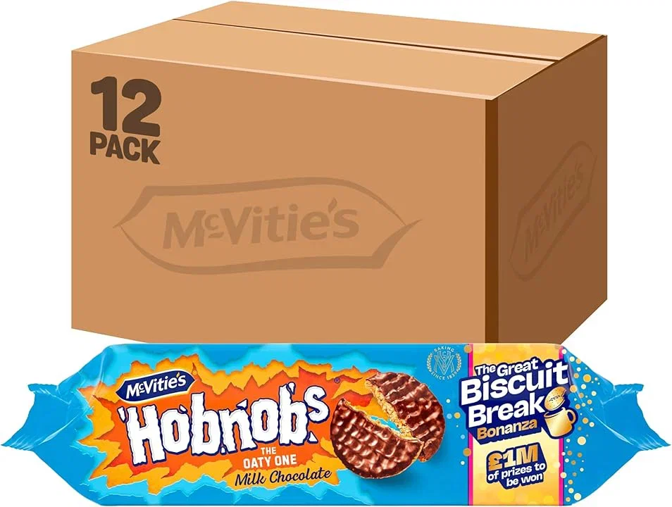 MCVITIE’S CHOCOLATE HOBNOBS BISCUITS, CLASSIC OAT AND CHOCOLATE BISCUITS, 431 G (PACK OF 12)-AUTO WIN 26/04
