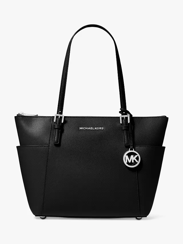 MICHAEL Michael Kors Jet Set East/West Leather Tote Bag, Black/Silver