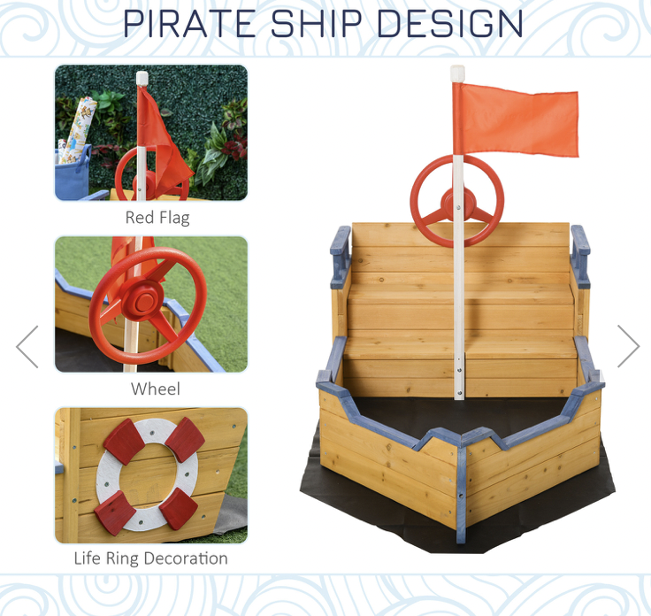 MID DAY AUTO WIN – Kids Wooden Sand pit Pirate ship sandbox – Orange – 26/05