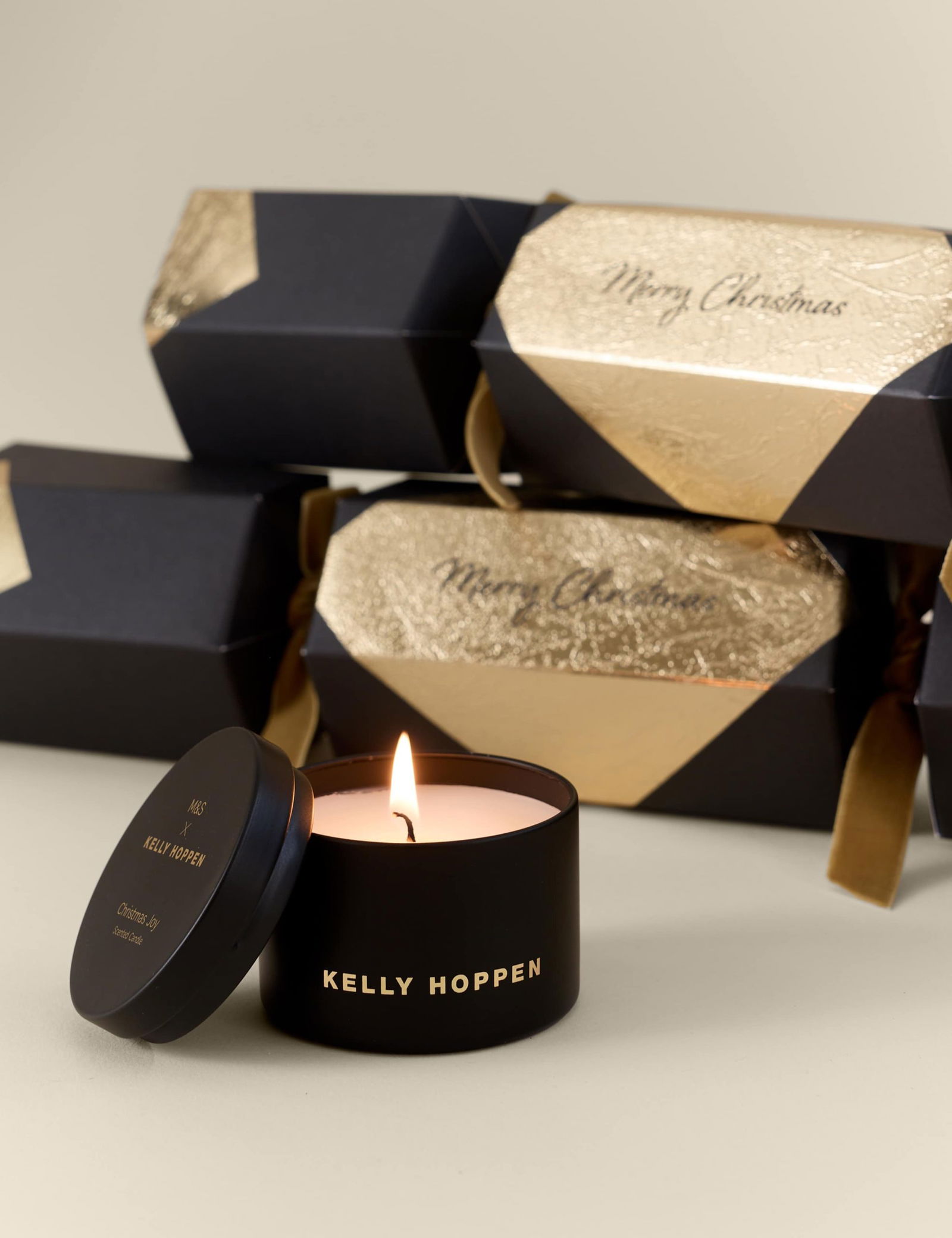 Elevate the Christmas dinner table with these sophisticated crackers from the M&S X Kelly Hoppen collection. There are 6 striking hexagonal crackers with gold textured foil and a “Merry Christmas” message in black text, all tied with gold coloured velvet ribbon. Each luxury cracker contains a Kelly Hoppen Christmas Joy scented candle, with seasonal top notes of mandarin, clove and cinnamon, laid over a heart of pine needles and maple, and a base of fir, cedar and sandalwood. The cracker also holds a hat, message and conversation starter, and is sure to be the standout element of any Christmas celebration.