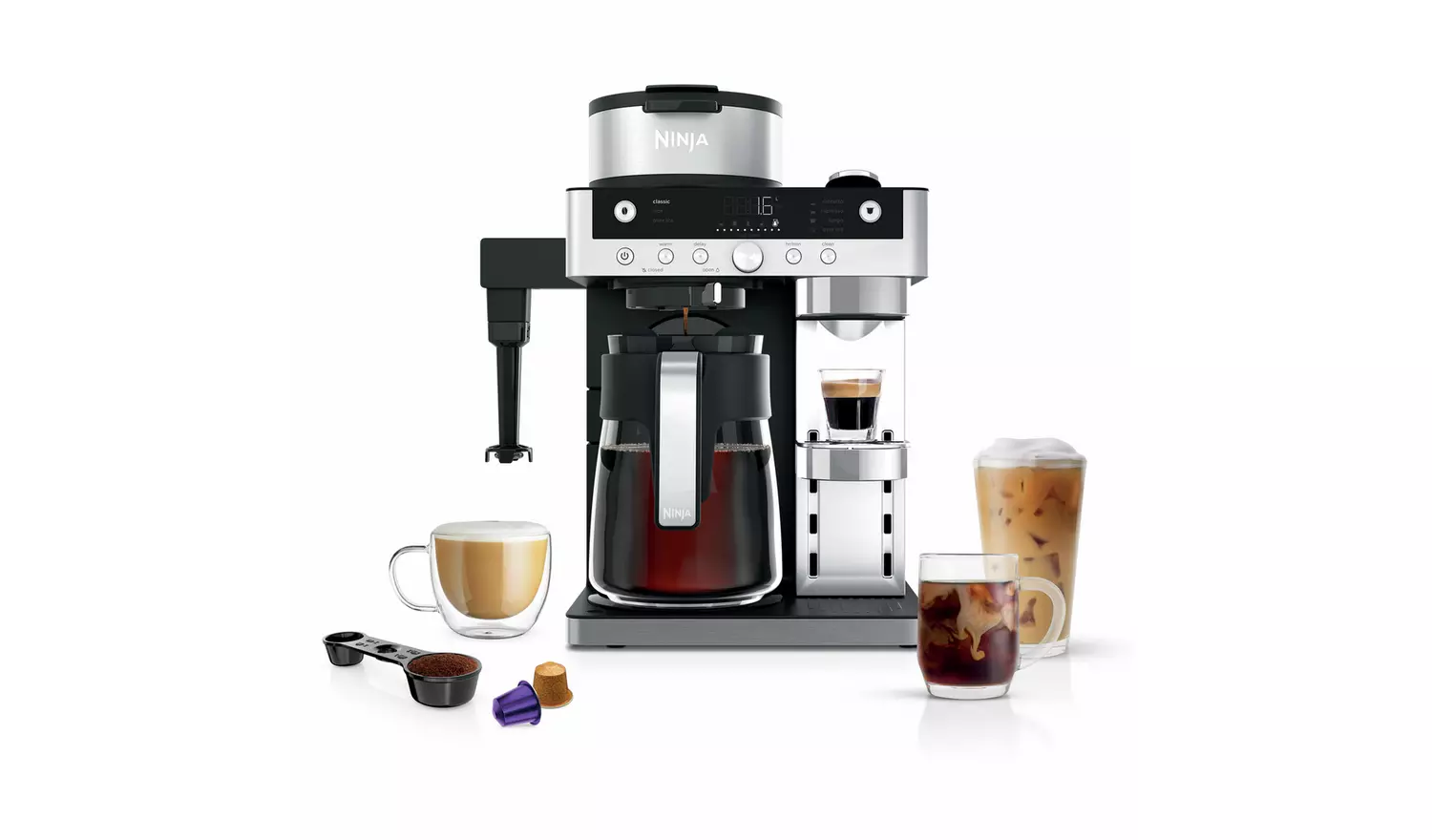 Introducing the Ninja Prestige DualBrew System, the 2-in-1 machine that can brew coffee capsules and filter coffee. Select from 10 drink sizes ranging from a single cup to travel mug when you brew filter coffee, plus 7 brew styles. Brew Nespresso Original capsules in 4 styles & drink sizes. (Compatible with Nespresso Original capsules and other 3rd party brands. Ninja is not affiliated with Nespresso or other brands. ).