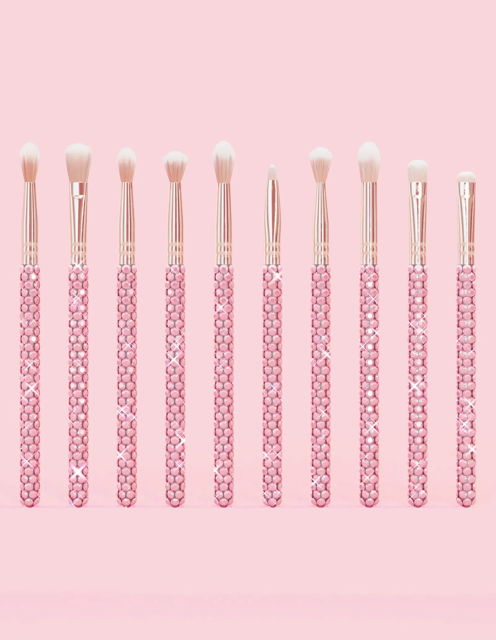 Each set features crystal-coated brush handles that shimmer with elegance and engraved chrome settingsfor a refined touch. These brushes aren’t just beautiful—they’re crafted to give you flawless, seamless makeup application every single time.