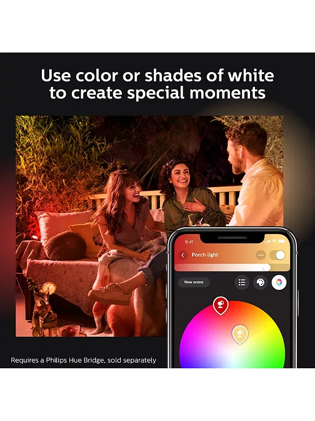 A Philips Hue Bridge is required for smart lighting control and available to purchase separately. Once connected, you’ll experience the full potential of this smart light and can use the Philips Hue app to control it from your smart phone or tablet.