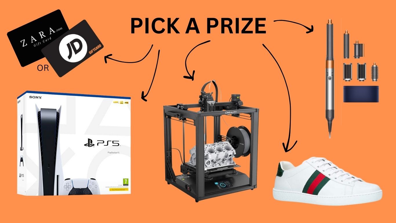 ONE LUCKY WINNER WILL GET TO PICK ONE PRIZE FROM BELOW