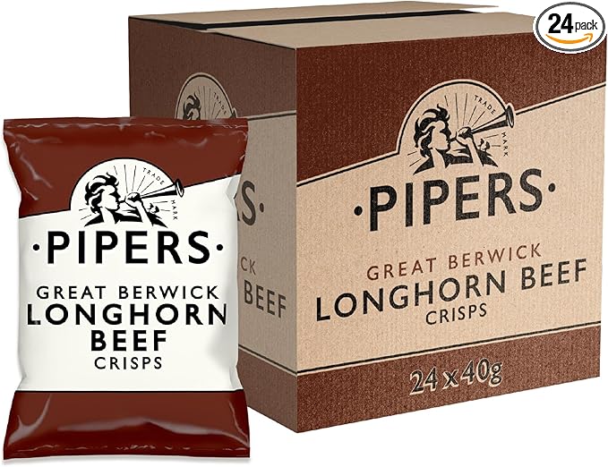 Pipers Crisps | New Flavour | Berwick Longhorn Beef | Full Case | Gluten Free, 40 g (Pack of 24)-AUTO WIN 26/03