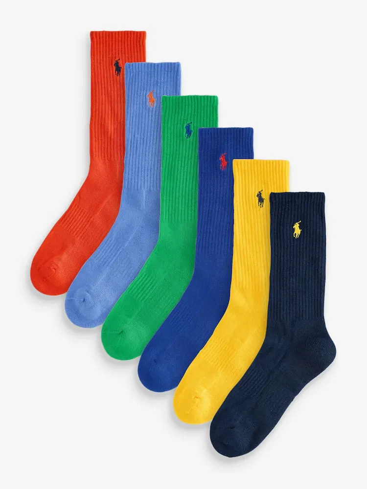 Polo Ralph Lauren Blue Multi Solids Crew Socks 6 Pack-AUTO WIN