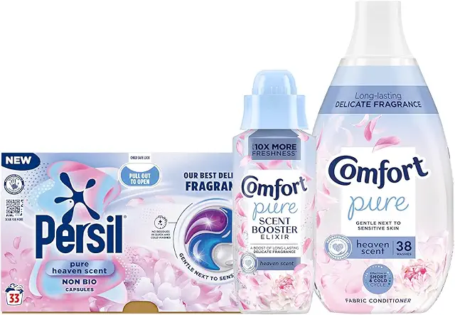 Pure Heaven Scent Laundry Care Bundle – Fabric Conditioner (38 Wash), Scent Booster Elixir (342ml), Persil Capsules(33 Wash), Long-Lasting Fragrance, Gentle & Fresh Laundry Care-AUTO WIN 05/10