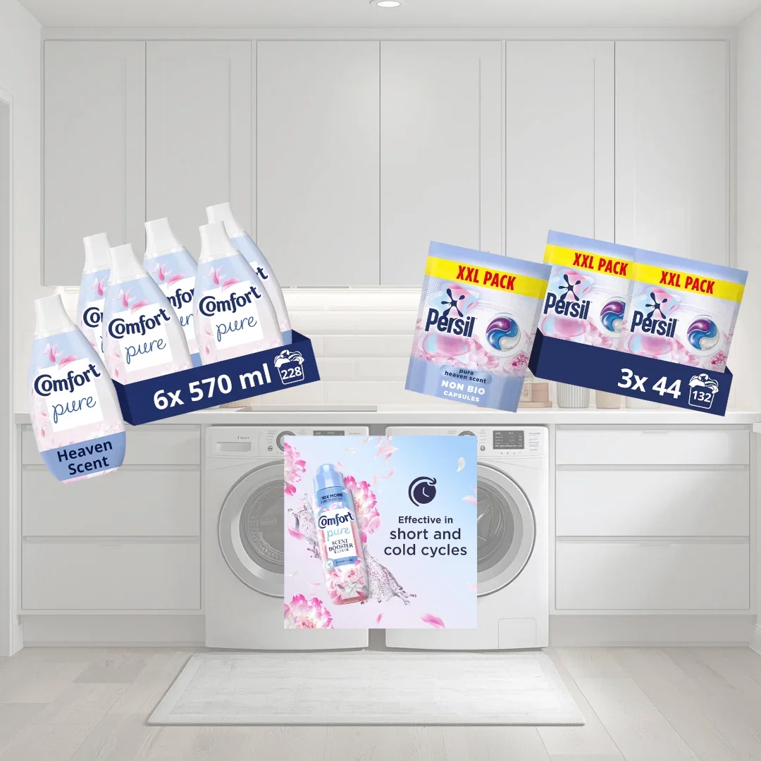 - Comfort Pure Heaven Scent Fabric Conditioner, Dermatologist-Recommended, Hypoallergenic and Gentle on Sensitive Skin, With CrystalFresh Technology – 570ml Pack of 6 (38 Washes Each, 228 Total Washes)