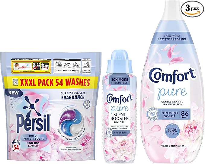 Pure Heaven Scent Mega Laundry Care Bundle – Fabric Conditioner (86 Wash), Scent Booster Elixir (460ml), Persil Capsules(54 Wash), Long-Lasting Fragrance, Gentle & Fresh Laundry Care-AUTO WIN 08/03