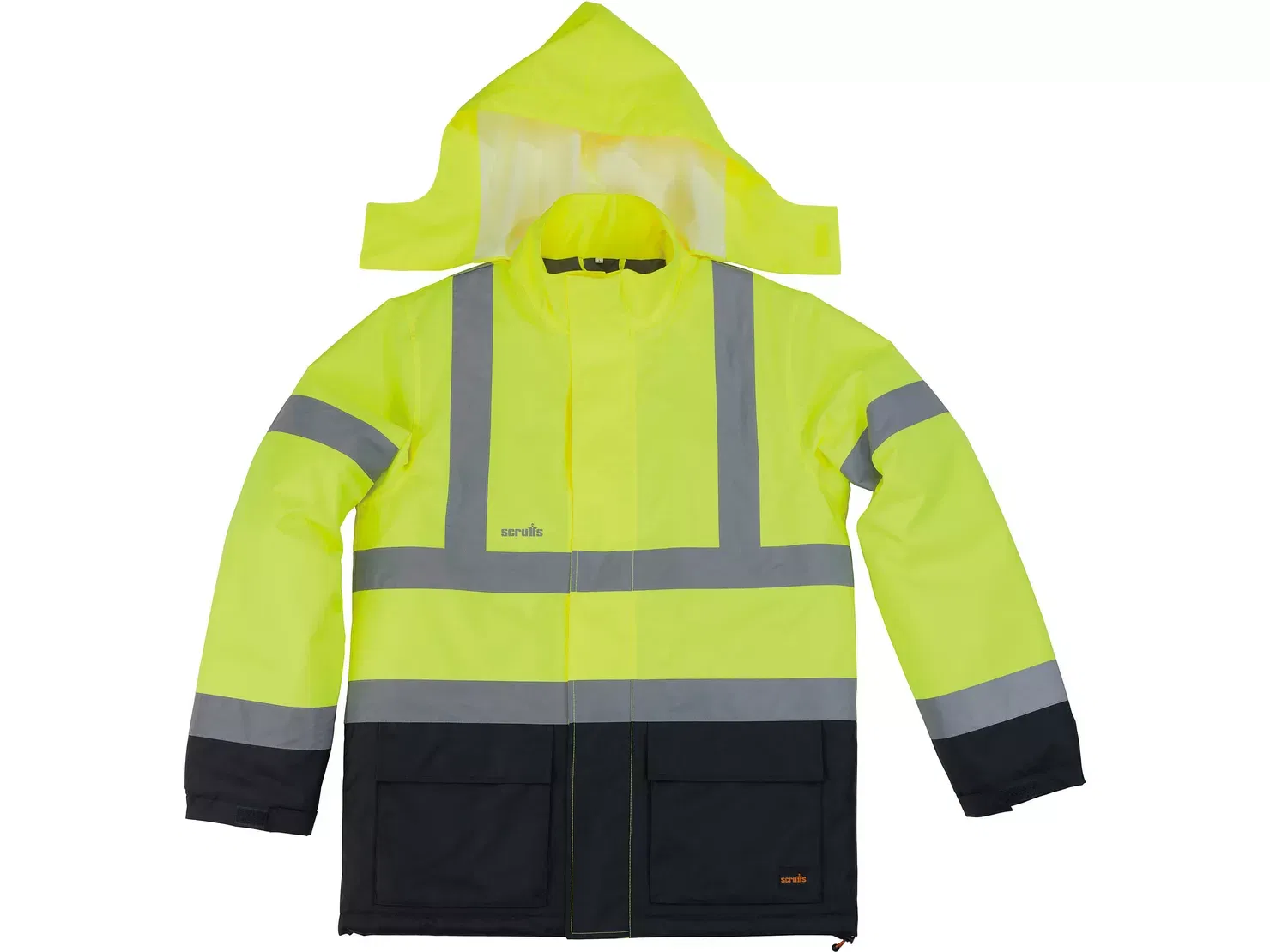 Scruffs High Visibility Waterproof Jacket Yellow/Navy-AUTO WIN