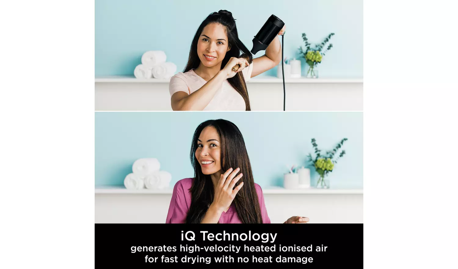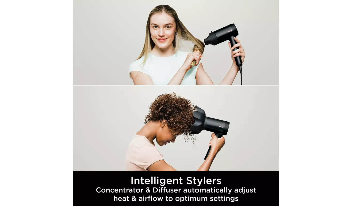 Fast drying. No heat damage. Styles that last. The Shark Style iQ Hair Dryer & Styler combines rapid air power with next-generation intelligence. IQ Technology generates high-velocity heated, ionised air for fast drying with no heat damage. Perfect for all hair types. Dry and style at the same time with 2 Intelligent Stylers. Heat and airflow settings intuitively auto-adjust for each styler, so you can confidently create your favourite looks without the guesswork.