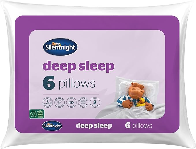 Silentnight Deep Sleep Pillow Pack of 6 – Soft Hotel Bed Pillows 6 Pack – Machine Washable Hollowfibre Sleep Easy Pillows,White-AUTO WIN 15/11