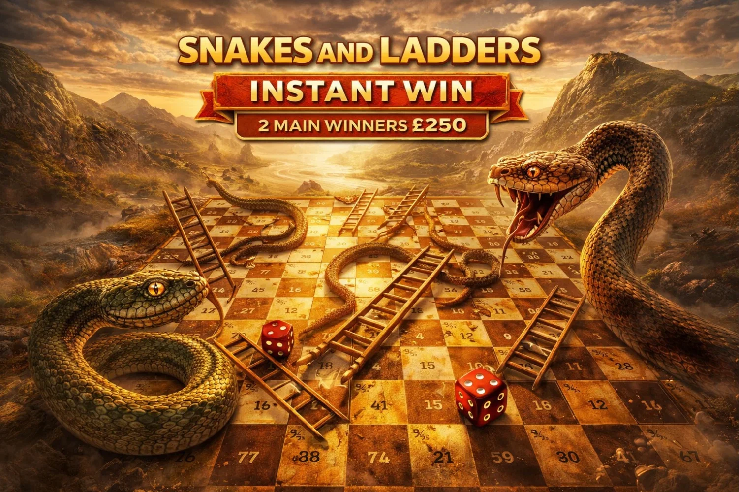 SNAKES AND LADDERS INSTANT WIN- 2 MAIN WINNERS £250 -AUTO WIN 08/04