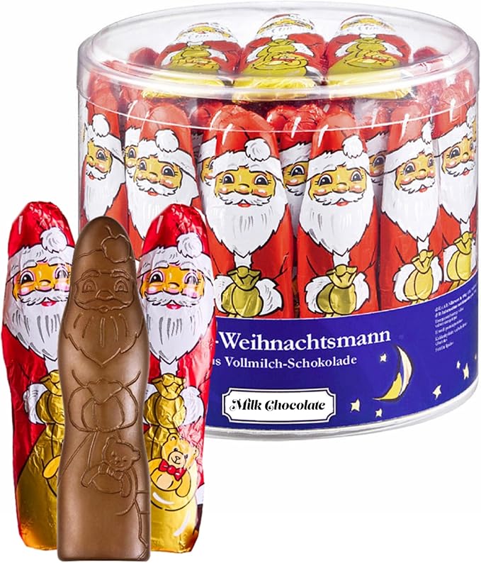 Delicious Milk Chocolate: each solid Santa Claus bar in Drum is crafted with the finest quality milk chocolate from Riegelein. Experience the rich and creamy flavor that melts in your mouth, bringing joy to your taste buds.
