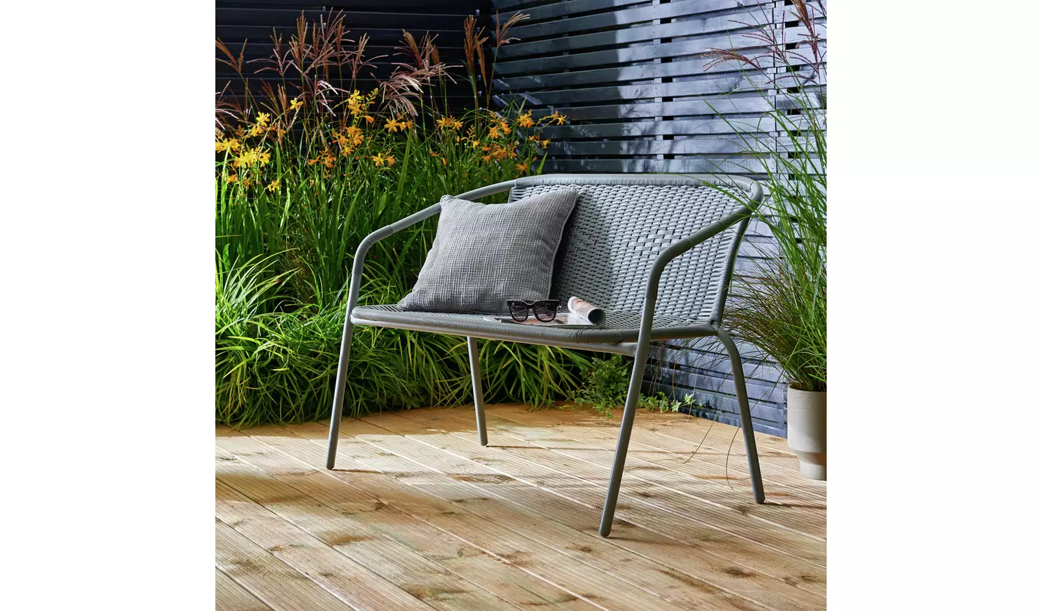 Sometimes you just need to stop and sit awhile. Perfect for any outside space, this charming steel wicker grey bench with diamond weave effect detail offers comfort and simplicity. Made from durable steel with a wicker effect seat it is a great value way to relax in the garden, on your patio or on your balcony. Fully assembled, just add sunshine.