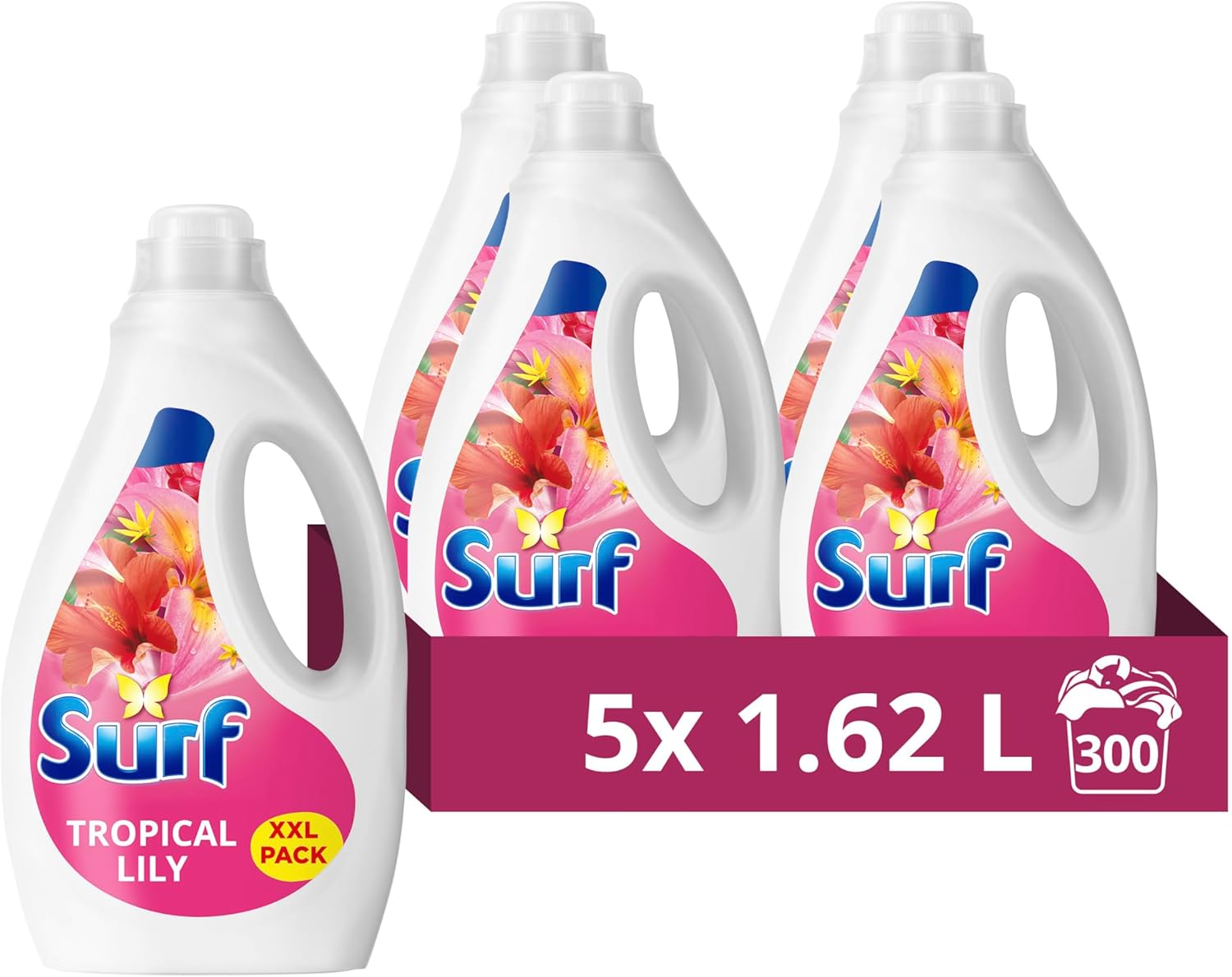 Surf Tropical Lily Laundry Washing Liquid 300 washes with a joy-infused fragrance with natural essential oils lasting up to 12 hours in wear Detergent for brilliantly clean results (5x 1.62 L)-AUTO WIN 23/03