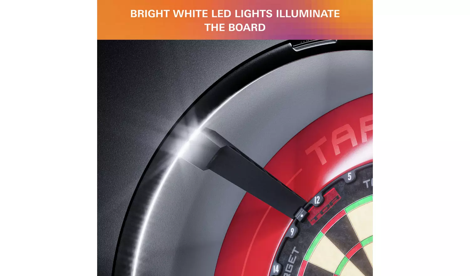 Equipped with bright white LED lights to illuminate the dartboard in any environment or room lighting conditions. The lights eliminate shadows and enhances the visibility of the board.