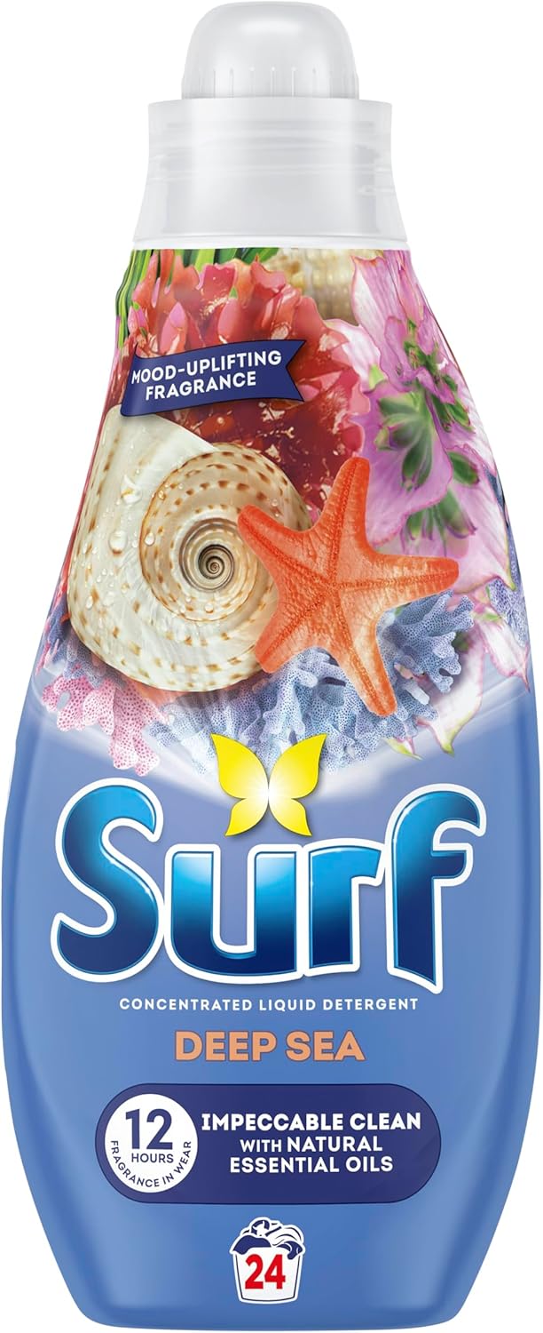- Surf Laundry Washing with a joy-infused fragrance & natural essential oil lasting up to 12 hours in wear Liquid Detergent for brilliantly clean results 24 washes -Scent Peony & Rose, Passion Bloom & Deep Sea