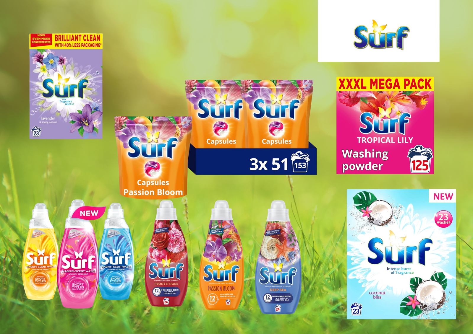 - Surf 3 in 1 Passion Bloom Laundry Washing Detergent Capsules joy-infused fragrance with natural essential oil lasting up to 12 hours in wear for brilliantly clean results 153 washes (3x 51)