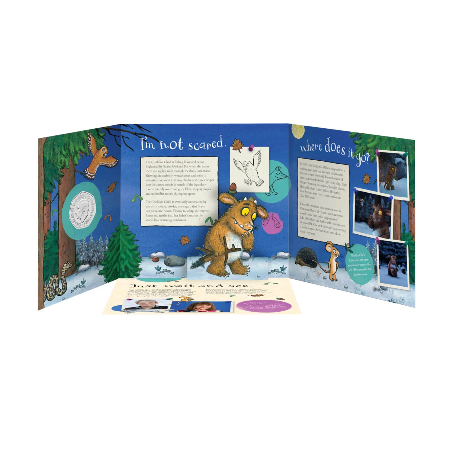 For the reverse of the coin, Axel Scheffler’s unmistakable illustrations have been faithfully remastered featuring colour printing
