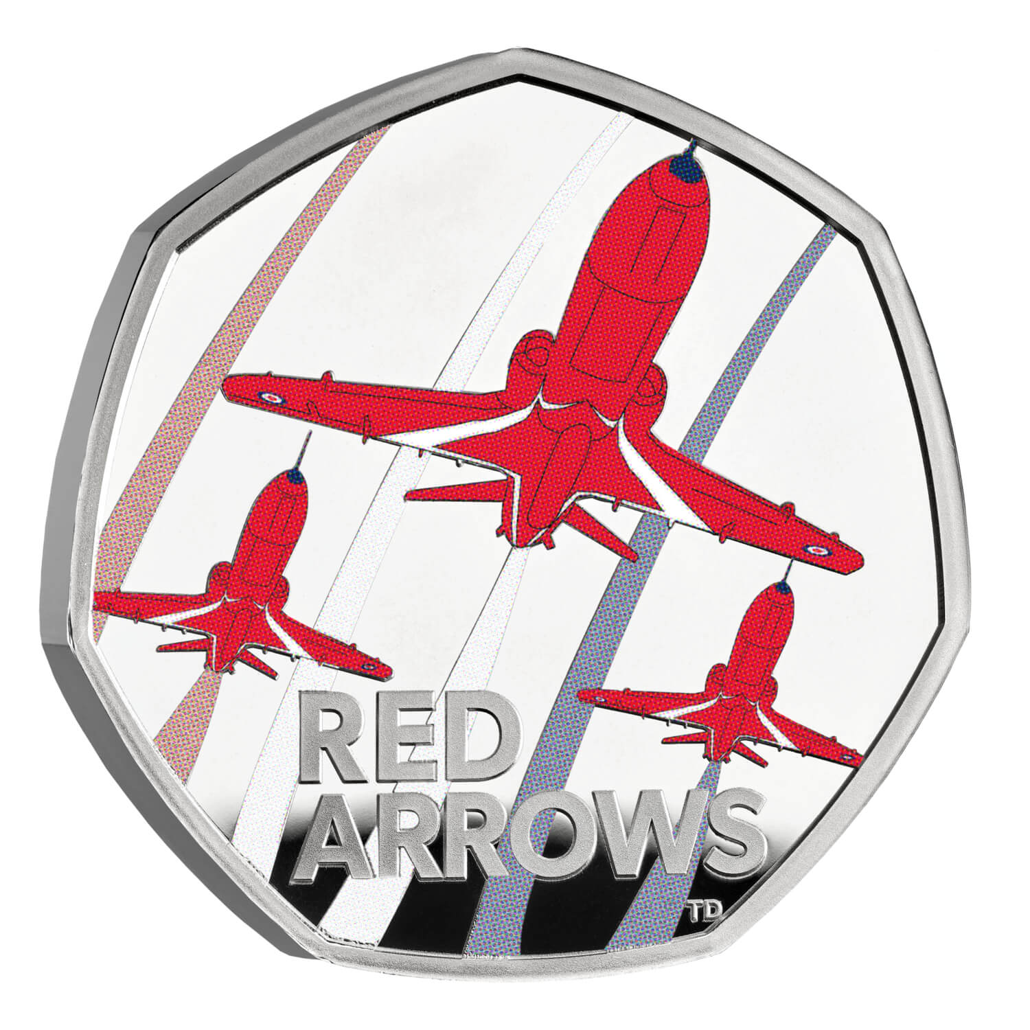 - Designed by Nigel Tudman at Tuch Design, the reverse features the distinctive Hawk T1 aircraft used by the Red Arrows