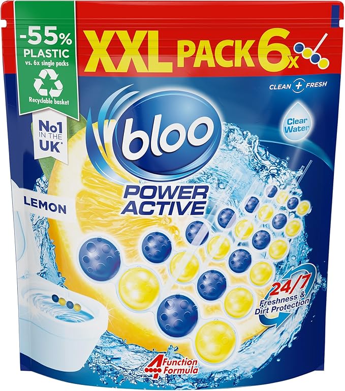 - Bloo Power Active Toilet Rim Block XXL pack (300g = 6x50g) with Fresh Lemon Scen