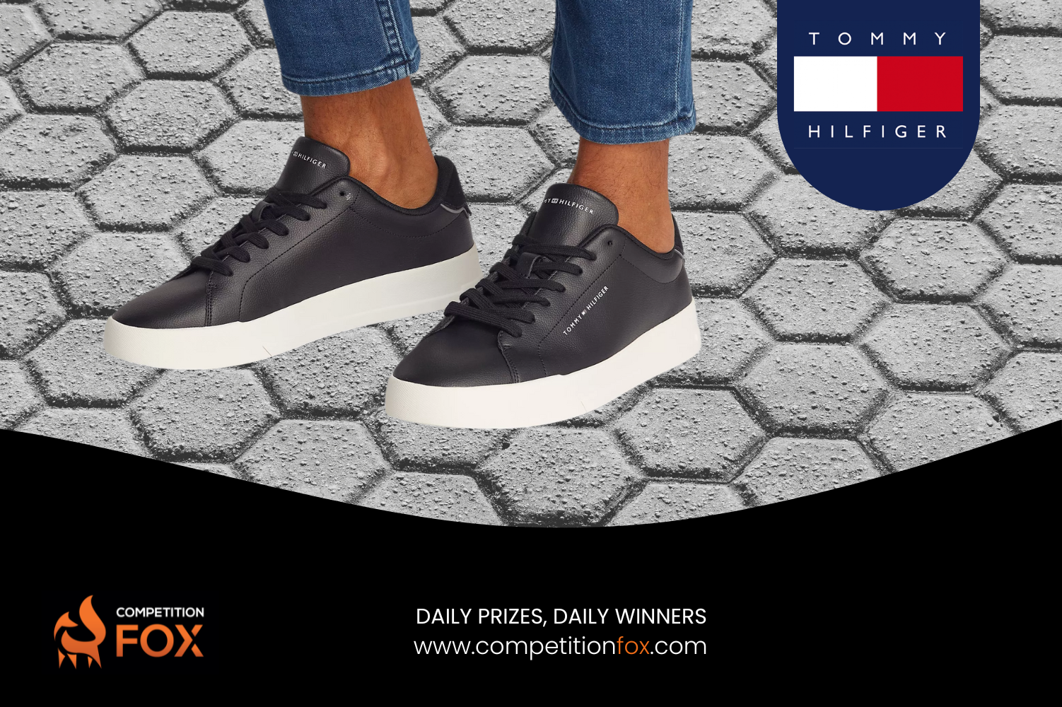 Tommy Hilfiger Logo Court Trainers, Black-AUTO WIN