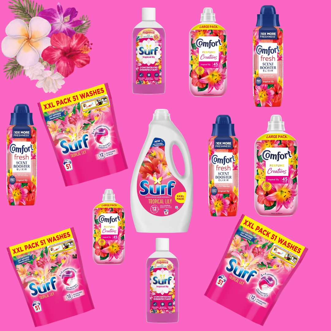 - Surf Tropical Lily Laundry Washing Liquid Detergent with a joy-infused fragrance & natural essential oils lasting up to 12 hours in wear for brilliantly clean results 95 washes 2.565 L