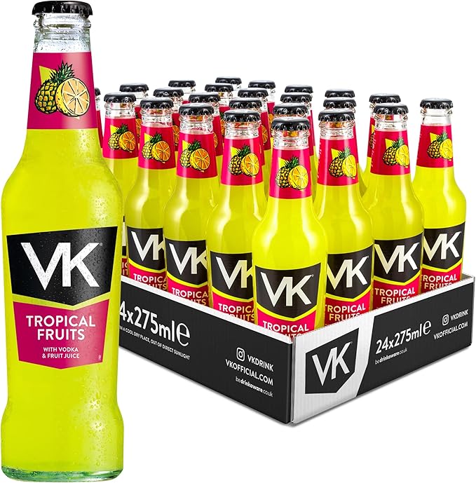 VK Alcopop Bottles | 24 x 275ml Case | VK Tropical Fruits -AUTO WIN 12/03