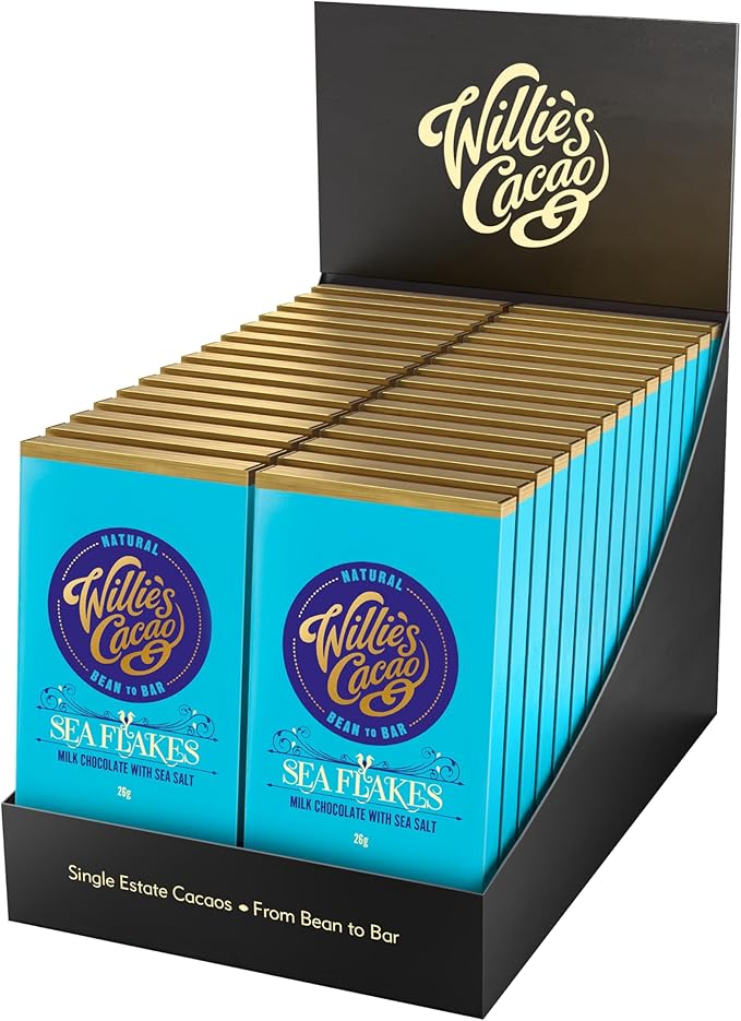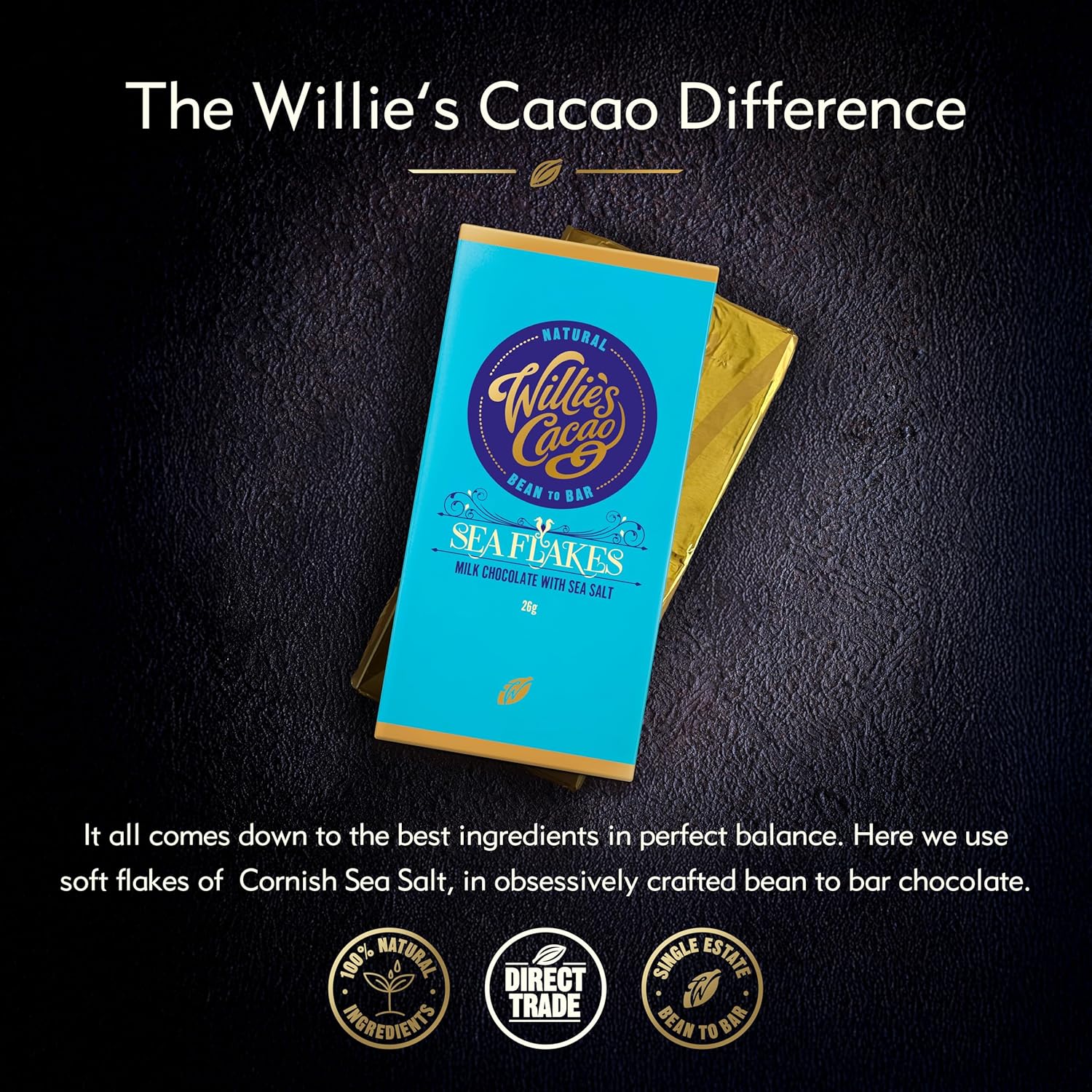 Willie’s Cacao – Sea Flakes milk chocolate bar, 44% Milk Chocolate with Cornish Sea Salt – 26g x 30 – Artisan Chocolate – Bean to bar AUTOWIN 27/11