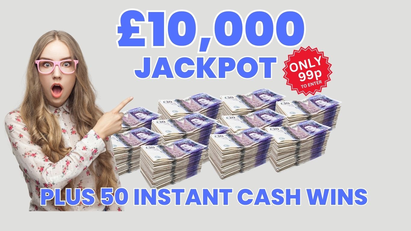 WIN £10,000 JACKPOT PLUS 50 INSTANT CASH WINS UP FOR GRABS -24/5
